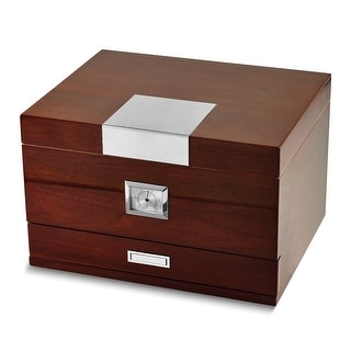 Curata Lacquered Walnut Finish Wood 60 Cigar Humidor Accessory Drawer Spanish Cedar Lining Humistat External Hygrometer On Sale Overstock 36200113