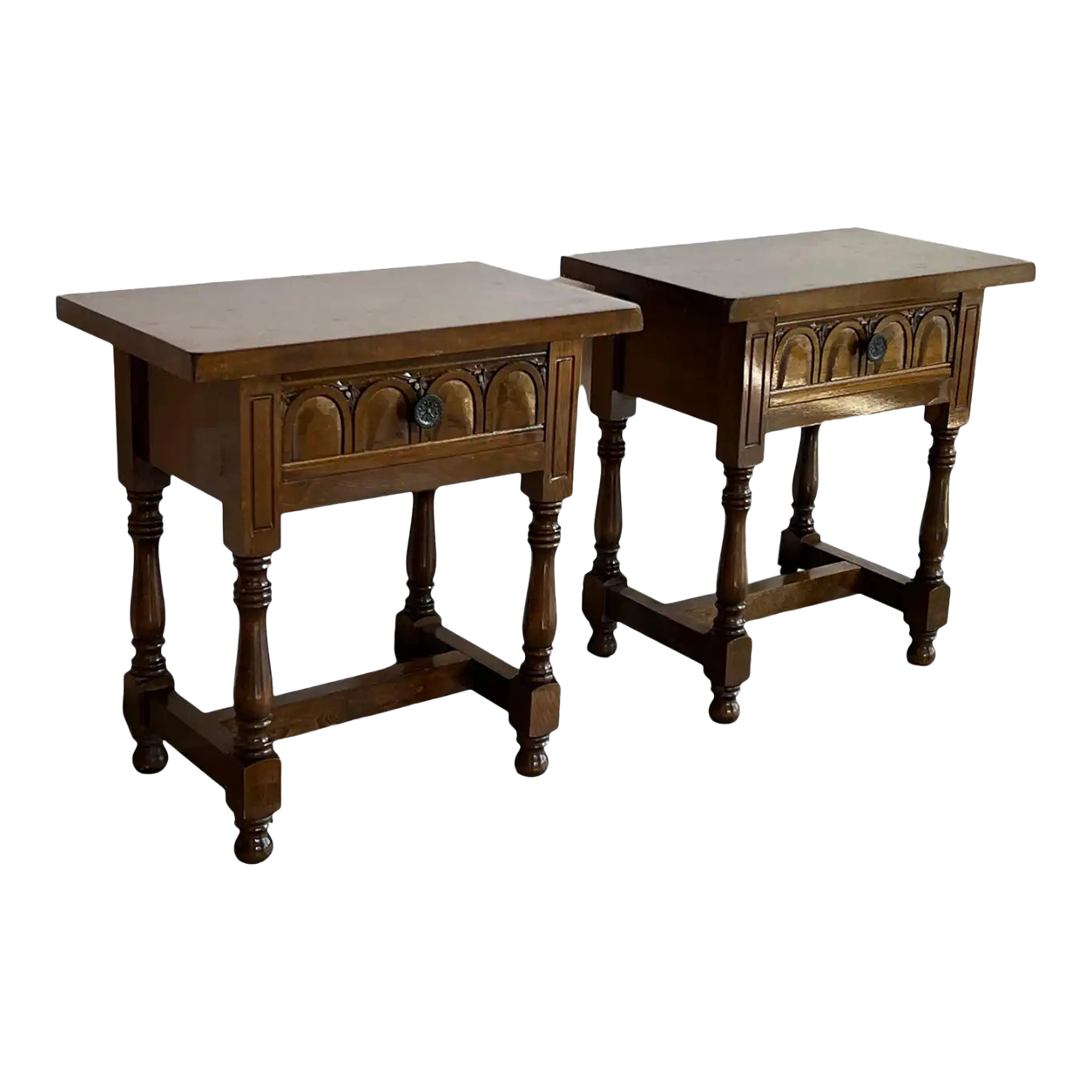 Early Spanish Rustic Oak Side Table With Drawer Iron Pull Laurier Blanc Unique Home Decor From Around The World